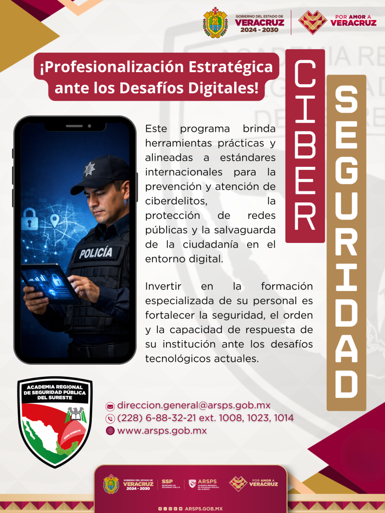 La Academia Regional de Seguridad Pública del Sureste invita a las instituciones públicas de seguridad a fortalecer a sus elementos mediante el Curso de Ciberseguridad.